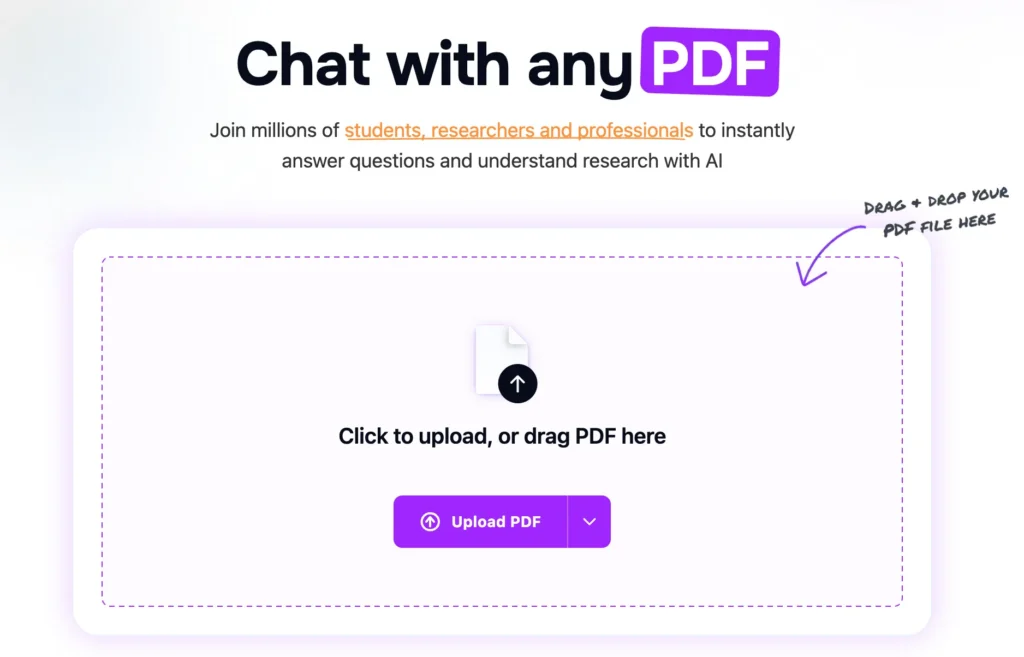 Modern Online-PDF-Tools Jetzt können sie mehr als nur bearbeiten oder zusammenführen. Tools wie ChatPDF lasse dich fragen Ihre Fragen zu Ihren Dateien: „Fassen Sie dies zusammen“ oder „Zeigen Sie die wichtigsten Punkte“. Sie erhalten sofort Antworten.