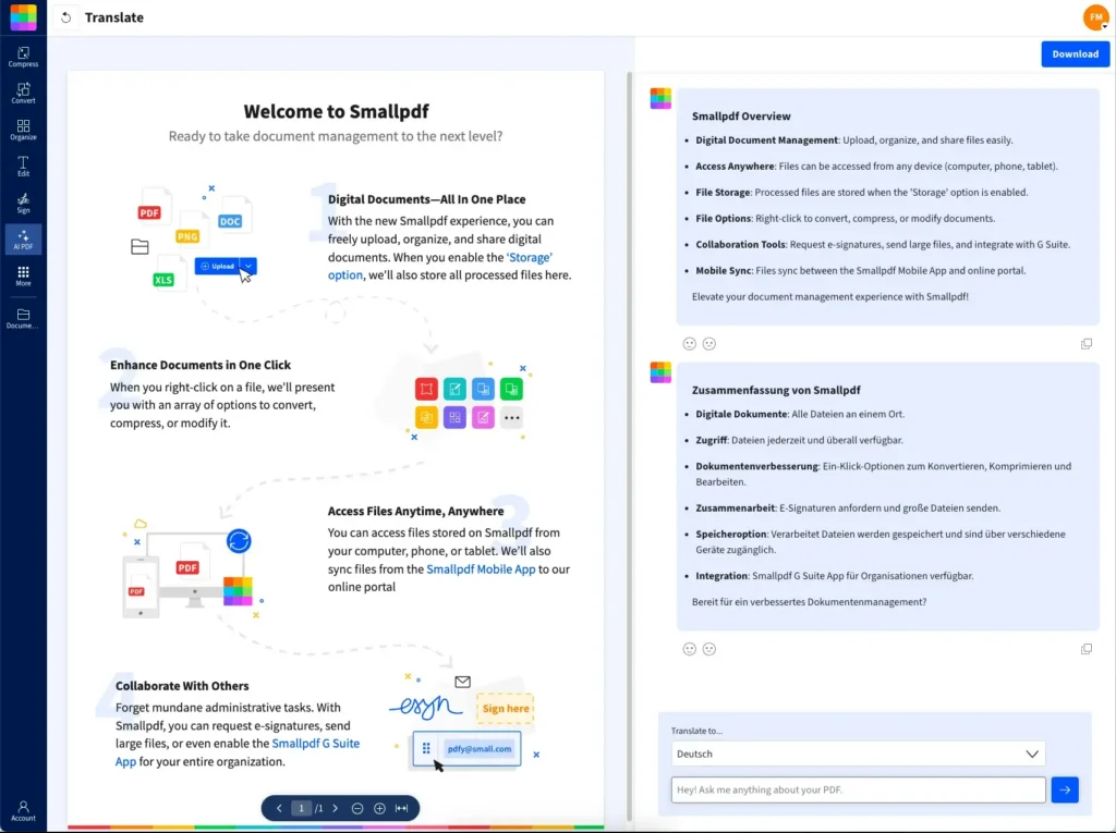 Für den täglichen Bürogebrauch – Formulare, Personalakten, Rechnungen – ist es ein solides All-in-One-Tool. Wenn Sie jedoch tiefergehende Einblicke oder Analysen benötigen, Smallpdf stoppt abrupt.