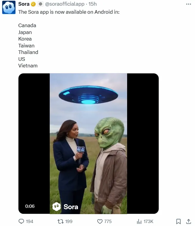 Lanzada originalmente para iOS en septiembre de 2025, Sora superó rápidamente el millón de descargas, atrayendo la atención tanto de creadores como de entusiastas de la tecnología. Ahora, La versión para Android está disponible. en EE. UU., Canadá, Japón, Corea del Sur, Taiwán, Tailandia y Vietnam, y próximamente en más regiones. Los usuarios pueden descargarlo directamente desde el sitio web. Google Play Store.